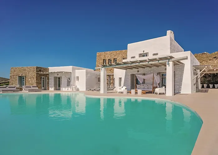 Villa Zen Mykonos位于卡拉法蒂斯,是一栋6间卧室的别墅,设有大海景的露台。 这家住宿场所距离埃利亚海滩有3.8公里,距离卡拉法蒂斯海滩大约2.6公里。